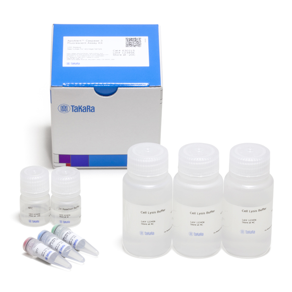 The ApoAlert Caspase Assay Kits provide a simple and convenient way to detect caspase protease activity using fluorometric or colorimetric methods. The assay kits detect caspase activation by assaying for the cleavage of a fluorescent or a colorimetric substrate. The entire protocol—from collection of cells to fluorometric or colorimetric results—takes only 90 minutes.