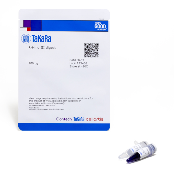 Takara offers a variety of DNA ladders suitable for different applications. Several standard l and фX174 digests are offered, as well as 20 bp–2.5 kb DNA ladders. A Wide Range Ladder, which consists of 16 quantitated fragments from 50-10,000 bp, allows both sizing and quantitation over a broad size range. This ladder is premixed with loading dyes and glycerol for direct gel electrophoresis. This Marker consists of λ cI857 Sam7 DNA completely digested by either restriction enzyme Hind III, EcoT14 I and Bgl II, Eco T14 I alone, BstP I.