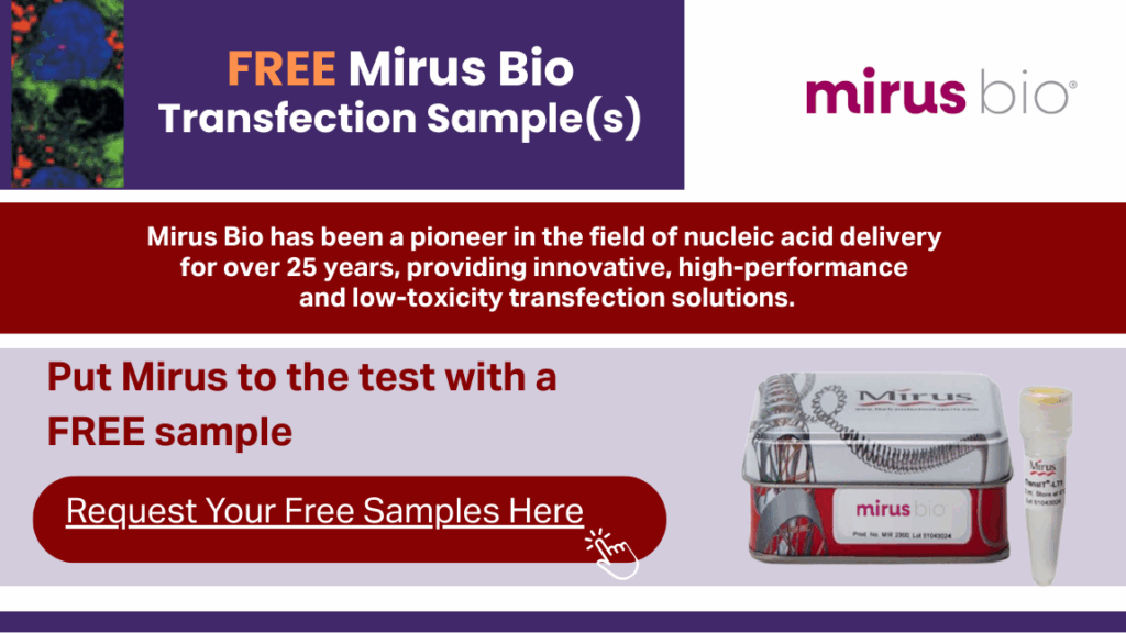 Free Mirus Bio Transfection Reagent. Put Mirus to the test with a FREE sample.